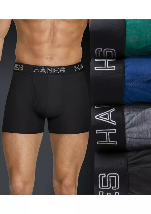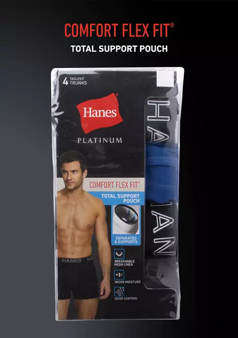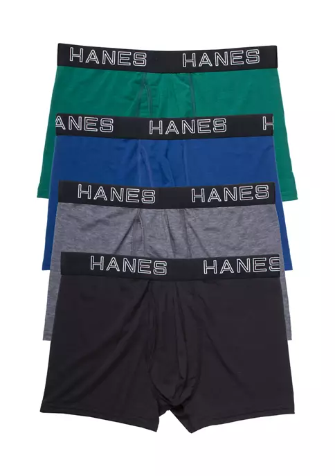 This 4-pack of Hanes® trunks separates and supports with a breathable mesh liner. The set wicks moisture and provides odor control.
