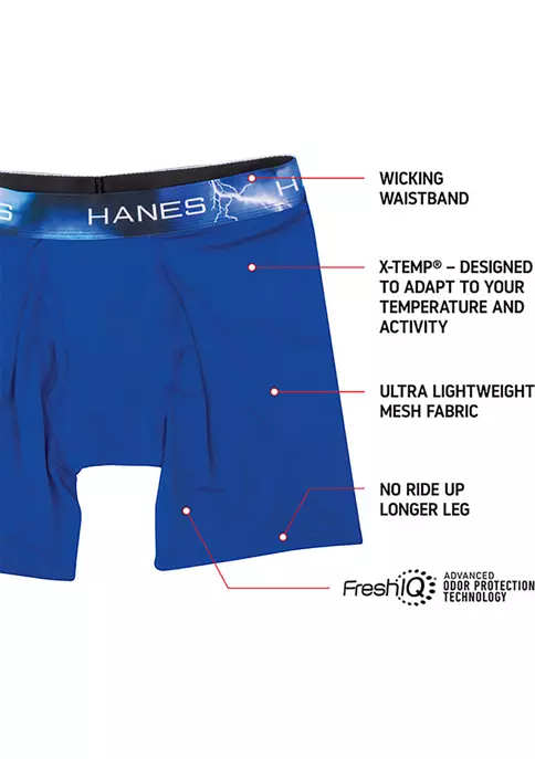 There is no better way to start off your day than in Hanes® Ultimate X-Temp Long Leg Boxer Briefs. Crafted with X-Temp technology that adapts to temperature, environment, and activity to keep you cool and dry for all day comfort. Designed to feel like you’re wearing nothing, the fabric is cooling, wicking, and features odor control.
