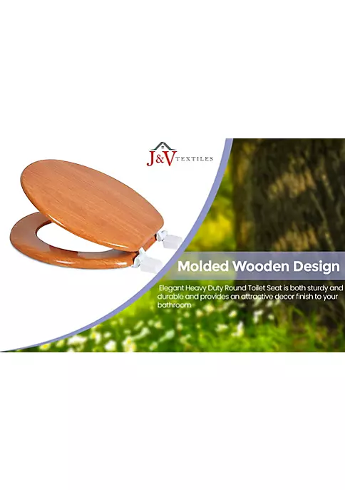 Enjoy the benefits of the traditional round wood toilet seat and lid finish. This elegant Heavy Duty Round Toilet Seat is both sturdy and durable and provides an attractive décor finish to your bathroom and toilet area. The attractive provides a stark contrast for any bathroom décor. Shift your style from plain white to pitch black for a change of bathroom scenery.