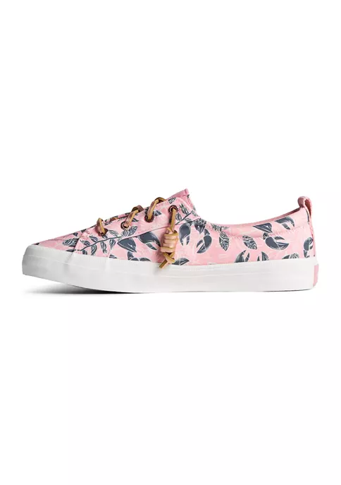 The Sperry® signature sneaker silhouette in resort-ready prints features genuine rawhide laces and barrel ties for easy on/off, a cork footbed made from natural materials, and a memory foam cushioned insole.