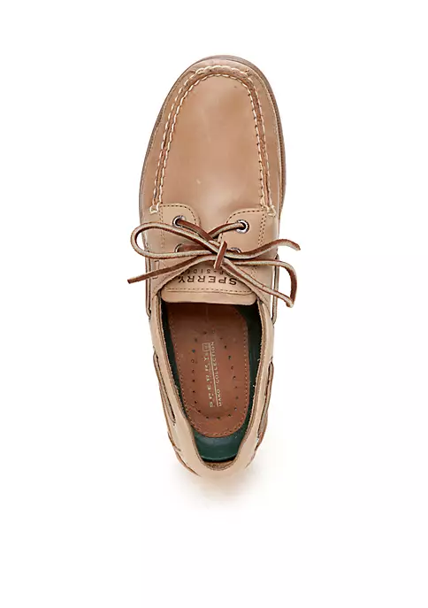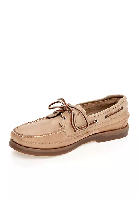 2-Eye Canoe Moc Boat Shoe. Genuine hand-sewn construction. Stain and water resistant leather. Padded tongue and collar for added comfort around the foot. Dual-density bottom with cushioned midsole. Shock absorbing EVA heel cup with heel pillow for added comfort.