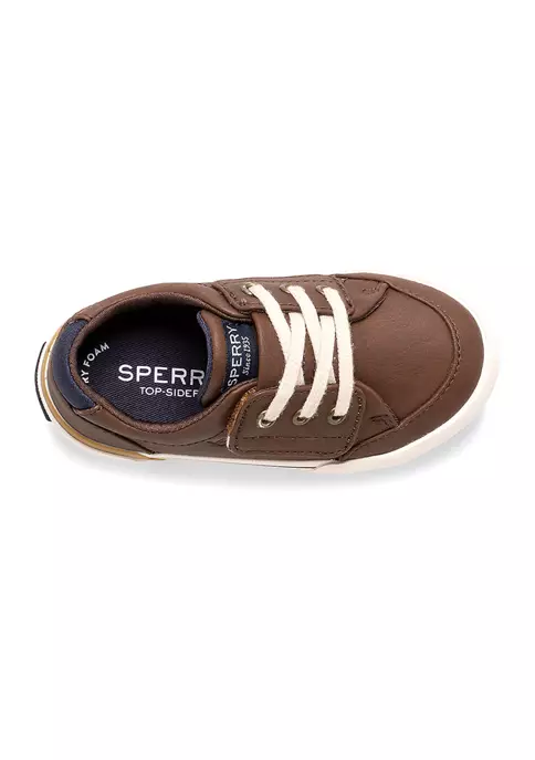 This retro-inspired sneaker embraces an old-school look and a padded heel collar that maximizes comfort. Its lace-up closure ensures feet stay secure while a non-marking rubber outsole provides grip and traction from backyard to playground. This shoe can tackle any messy adventure by simply tossing it in the wash and air drying.